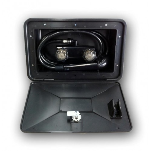 This external shower box is a must for any caravan. They are easy to use, and store. Can be locked away safely whilst driving, and are an extra convenience when traveling the outdoors.